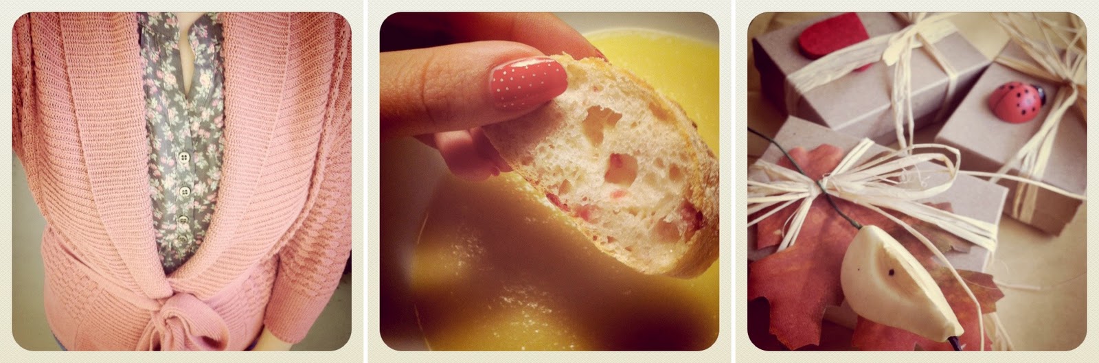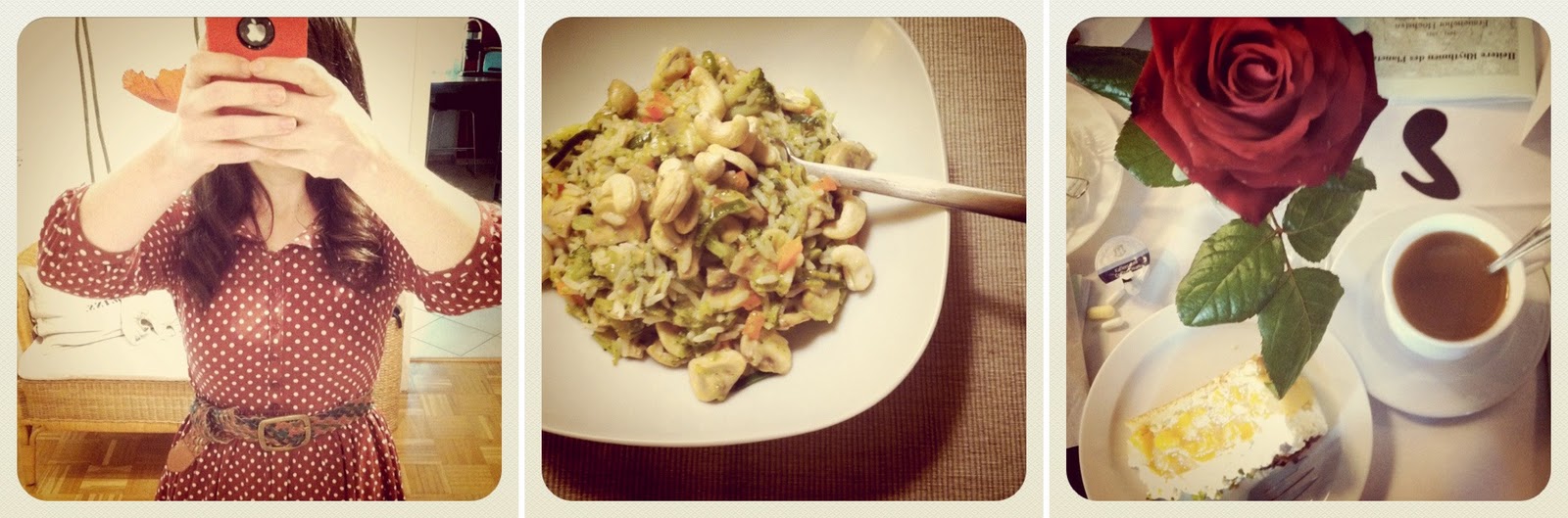 1. Allerbestes Pünktchenkleid. 2. Gemüsecurry mit Erdnussbutter und Cashewkernen. 3. Beim Herbstkonzert meiner Mama gewesen und dort Kuchen gegessen…