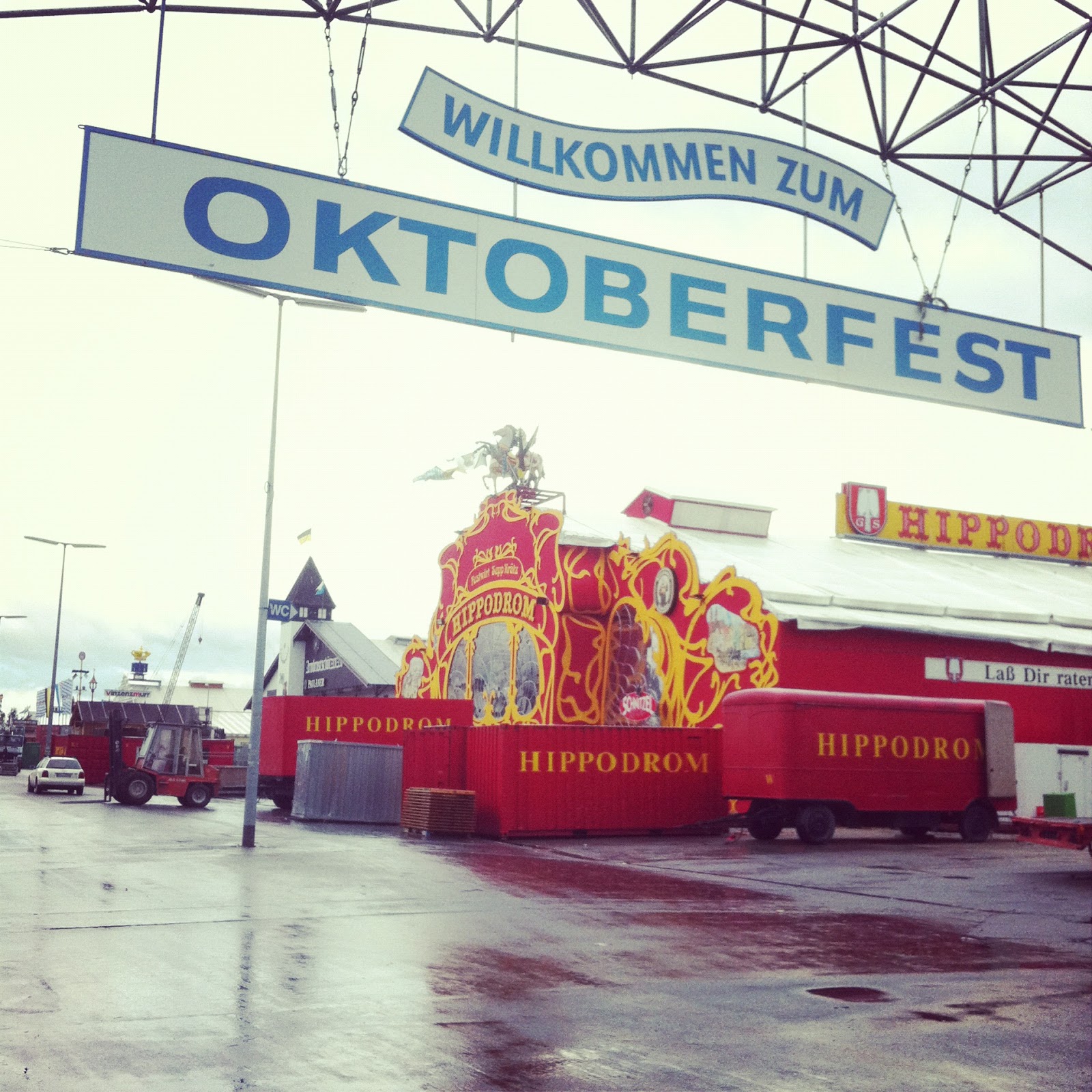 Zwei von Euch haben es erkannt: Wir sind dieses Wochenende in München. Leider ist das Wetter ein Arschloch und so hat der Freund, der das erste Mal hier ist, noch nicht viel von der Stadt sehen können. Ein schneller Blick aus Rathaus, vorbei am Odeonsplatz, alles schon im Nieselregen, dann ein paar Minuten Surfer am Eisbach gucken und schließlich mitten im Englischen Garten vom Platzregen überrascht werden – eine schlechte Ausbeute für zwei ganze Tage… Dafür waren wir schon nett essen und im Kino. Hat auch was. Nun setzen wir unsere Hoffnungen darauf, dass heute vielleicht noch ein wenig was drin ist, denn morgen geht es wieder nach Hause. Damit ihr Euch ein wenig vorstellen könnt, wie es hier gerade so aussieht, lasse ich Euch noch ein Bild vom verregneten und verlassenen Oktoberfestgelände da. Auch schön!