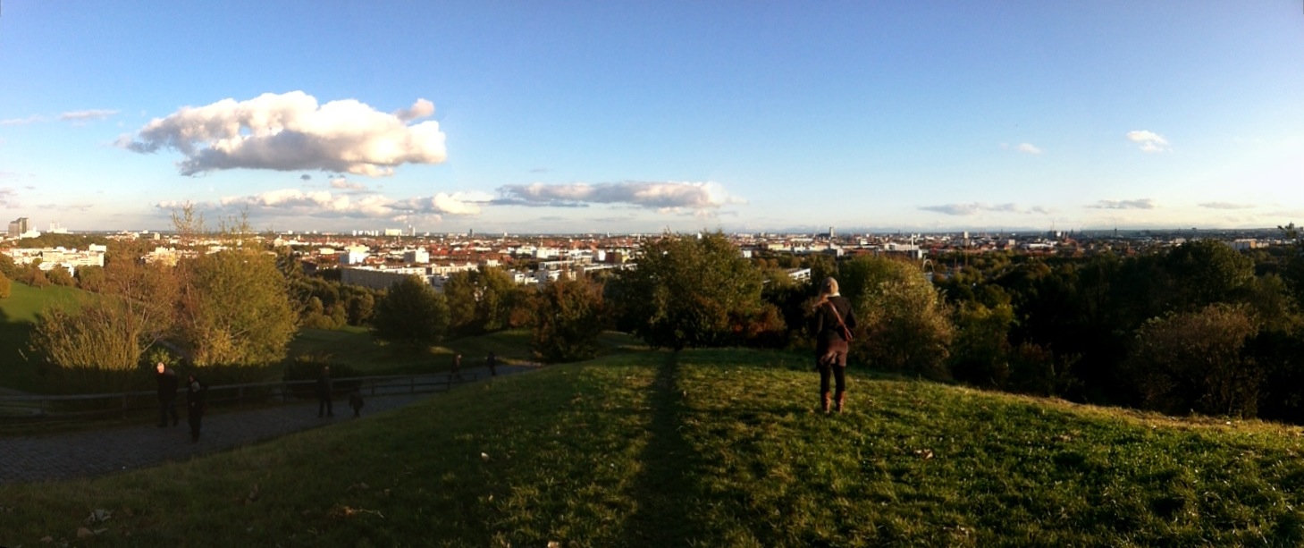 Während es heute morgen in München schon wieder aus Eimern gegossen hat, hatten wir gestern tatsächlich noch etwas Glück. Nachmittags ging es daher für anderthalb, zugegebenermaßen etwas fröstelige, aber sonnige Stunden in den Olympiapark. Dort habe ich mein Möglichstes gegegeben und trotzdem nur ein unscharfes Panoramafoto von der Münchener Skyline für Euch zustande bekommen. Aber der Wille zählt, nicht wahr?! Immerhin kann man den blauen Himmel sehen… Mittlerweile haben wir München schon wieder „Pfiadeich“ gesagt und sitzen uns im Zug den Popo platt. Nur noch vier Stunden. Hossa. Bis morgen zurück in Dortmund.