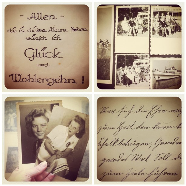 das erbe ist toll, vorallem die alben sind ja hochinteressant! ja, da würde ich gern mehr davon sehen. 😉 ich habe übrigens letztens auch mal ein altes album von wildfremden in der hand gehabt. mit wunderhübschen sepiabildern & einem ehepaar, dass fast nur ausschließlich ihren hund fotografiert hat! das war sooo rührend, wie sie ihn vergöttert haben – hund im schnee, hund unterm weihnachtsbaum, hund im urlaub…! ich hätte es ja wirklich fast mitgenommen, aber der freund wollte nicht. 🙁 mää! also, zeig uns die bilder!!! 😉 lg, evi