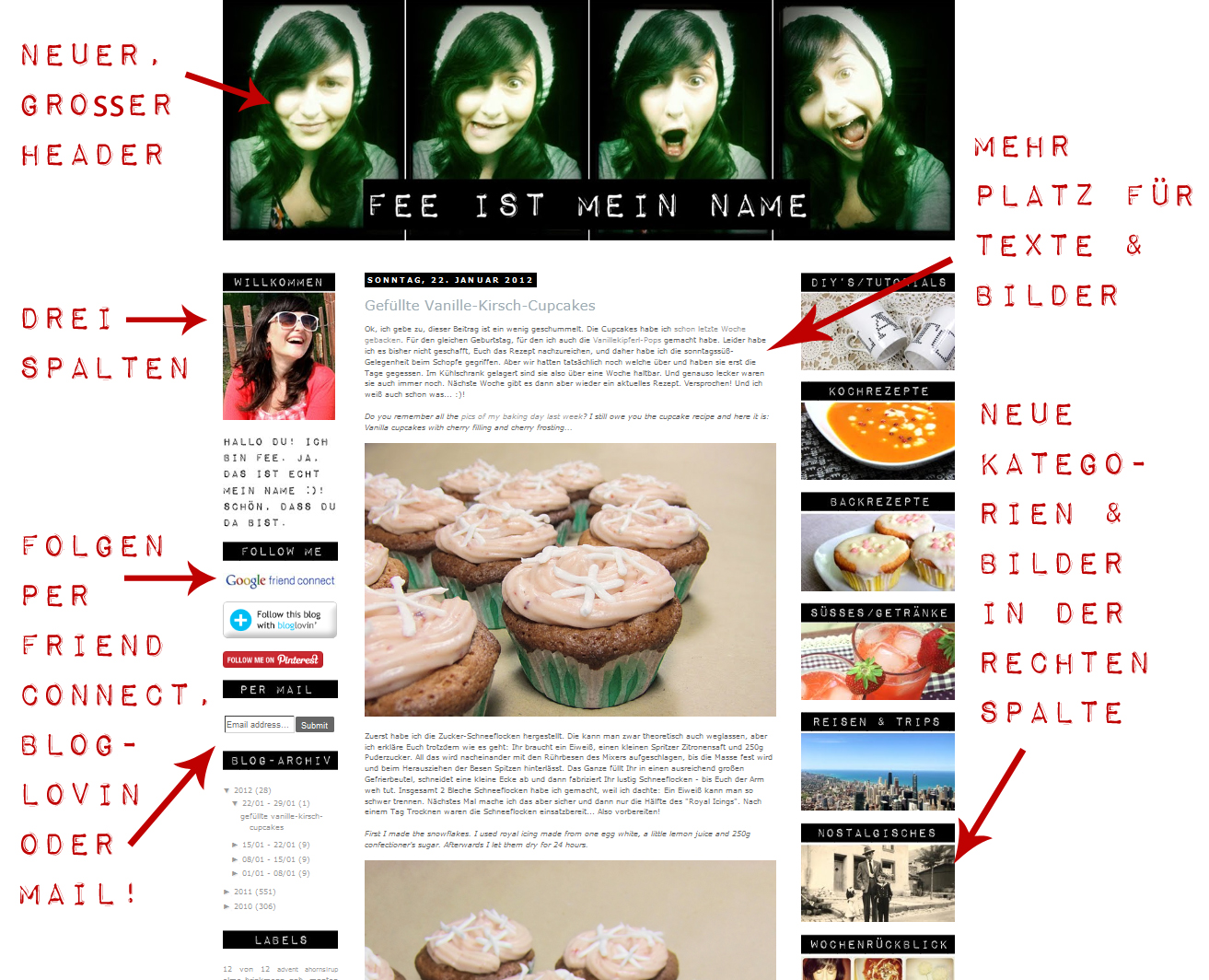 First of all the new layout is much wider and it has three columns. That means more space for text and pictures as well as a better organisation in the sidebars. You can now follow me with Google Friend Connect, bloglovin‘ or per mail. In the right sidebar you’ll find newly designed categories. They are titled in german, but most of the pictures speak for themselves, I think. They will be some more, but minor changes in the next weeks, but I’m happy that the basic layout is online now. How do you like it?