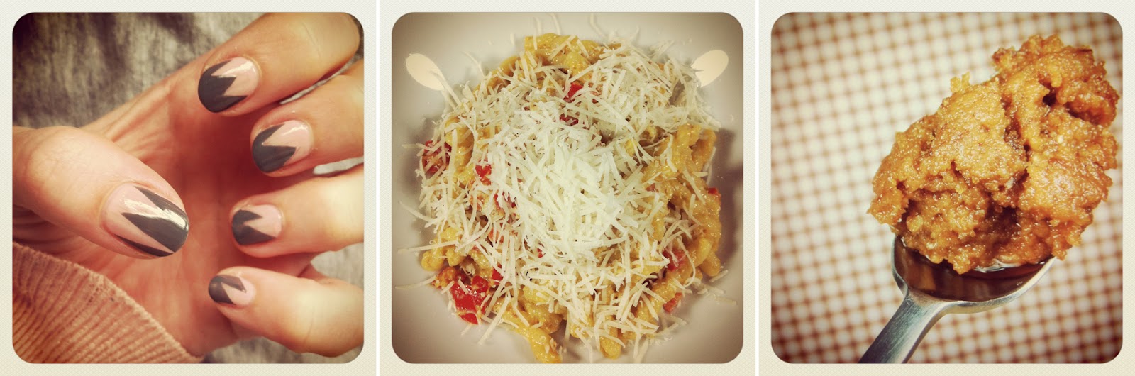 – 1. „Spiky“ nails. 2. Pasta with pesto sauce, bell pepper and mushrooms. 3. Made Pesto. Recipe to come.