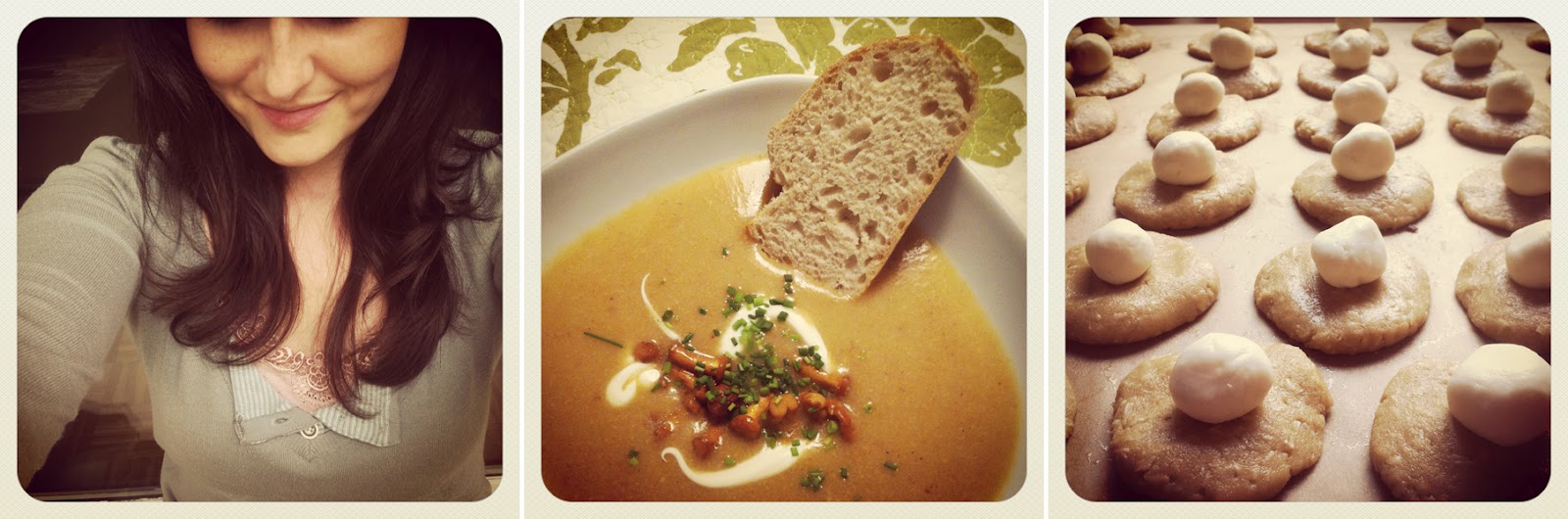 1. A thin summer jumper. 2. Chanterelle soup. 3. Baked some filled coconut cookies. Yummy!