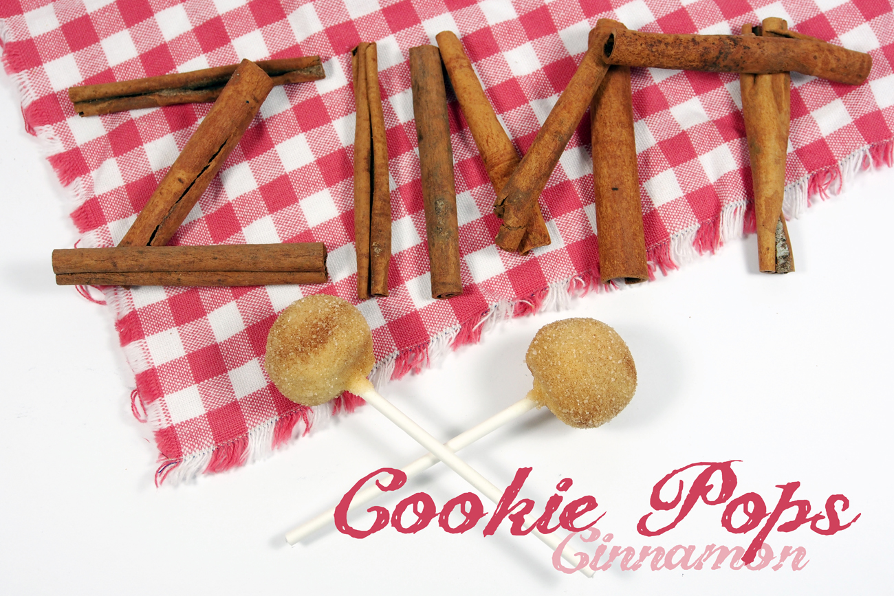 For 20 Cookie Pops I used 150g crumbled „Zimtsterne“ cookies and mixed them with a frosting made from 40g cream cheese, 25g soft butter, 100g powdered sugar and cinnamon. I formed twenty little balls and placed them in the freezer for one hour. Afterwards I stuck lollipop sticks into each ball and stored them cold again. Next I melted 300g white chocolate and mixed some sugar and cinnamon. Then I rolled each ball in the chocolate and sprinkled it with the sugar mixture. Finally I used a kind of foam block to let them dry overnight. Store them in the freezer, if you don’t wanna eat them right away, but get them out at least two hours before serving them. Caution: They are very sweet :)! But we all like sweet, right?