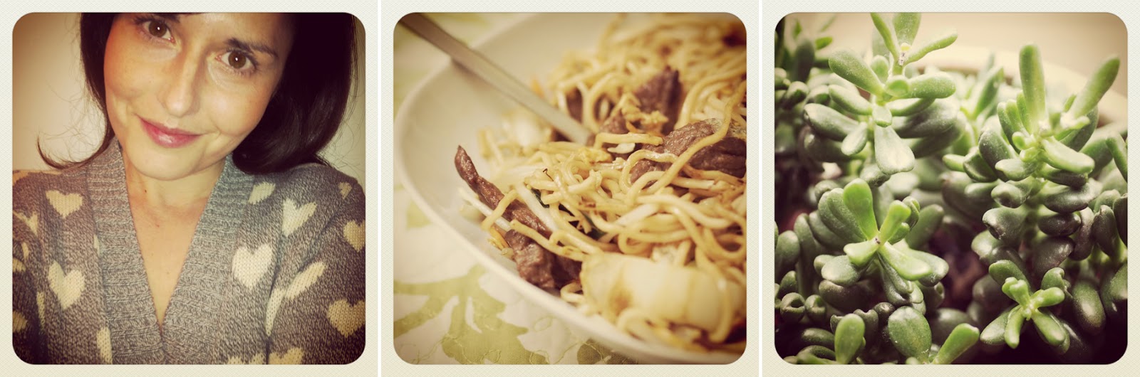 1. My new heart cardi. Great for chilling at home. 2. Asian style noodles with beef. A chinese take away staple for me. 3. Watered my plants. At least it’s green inside.