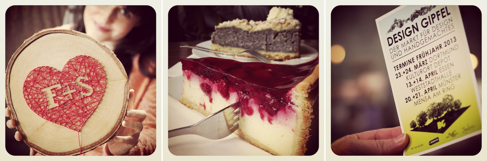 1. Lachsfarbene Omastrickjacke. Im Hintergrund zu sehen. Außerdem „getragen“: Herziges Geburtstagsgeschenk fürs Fotoshooting für den morgigen Post. 2. Kuchen. Meiner: Himbeer-Schmand. Julis: Mohn. Offensichtlich. 3. Beim Designgipfel gewesen. Hier mein Denkanstoss dazu.