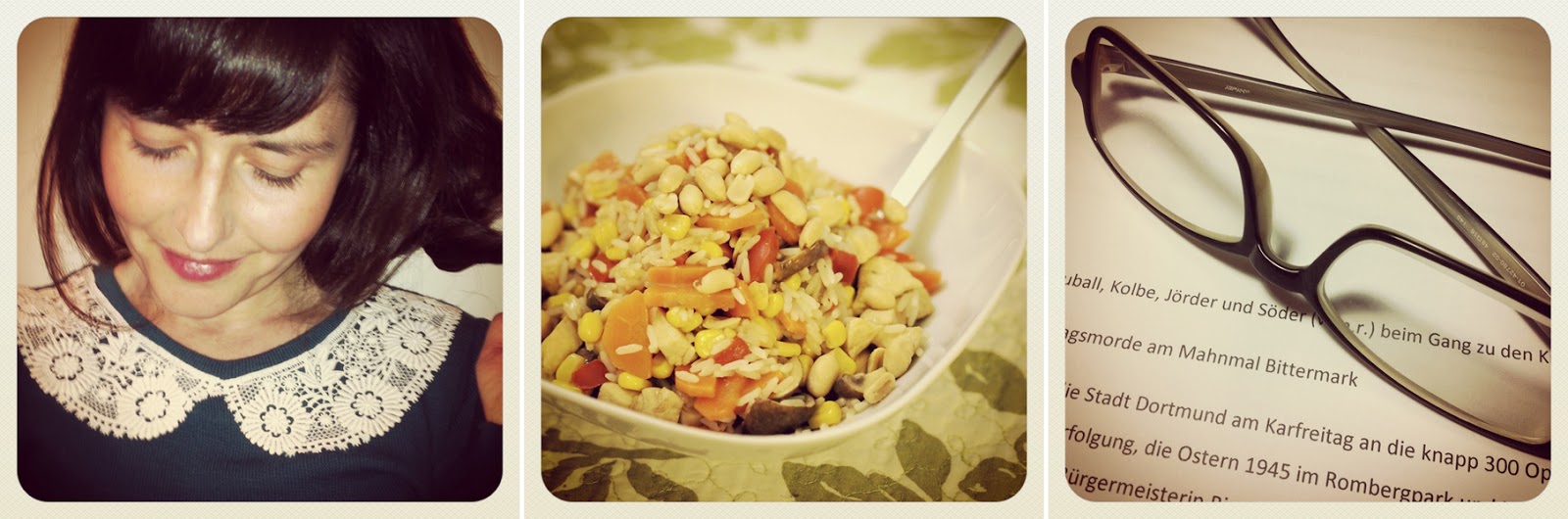 1. Spitzenkragenpulli. Damit komme ich mir immer so gediegen vor :)! 2. Curry mit allen Resten, die der Kühlschrank hergab. 3. Gearbeitet. Vor dem Urlaub musste noch eine Hausarbeit raus.