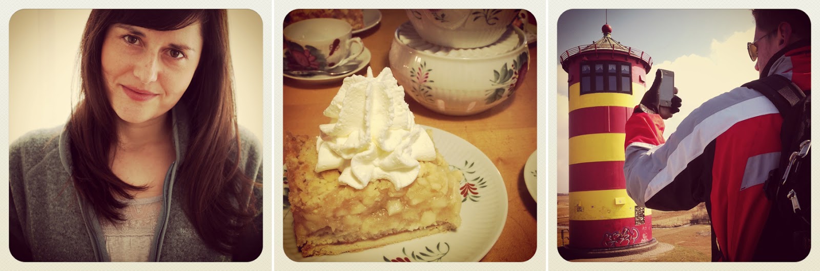 1. That’s me „wearing“ a tired face, after just one day of vacation. Recreation? Haha. But after going outside, I felt better. 2. A big piece of apple cake. I also had three pieces of apple strudel during our five days in East Frisia. I didn’t know it’s so common there. They served it in every restaurant and cafè. 3. Visited the lighthouse in Pilsum. At our first visit there two years ago I was really sick.