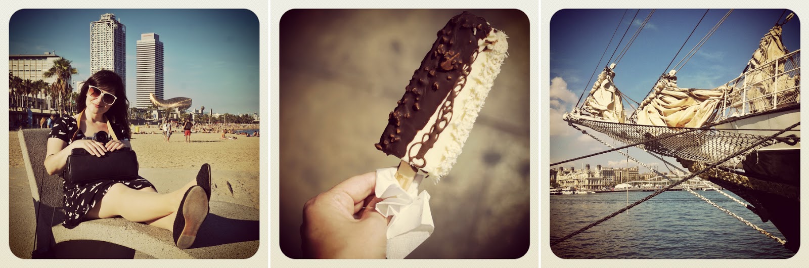 1. Das Schwanenkleid. Es freute sich hier ganz besonders vor dem Fisch von Gehry posieren zu düfen. 2. Frisches Eis am Stiel. Weiße Schokolade mit Schokoüberzug, Haselnüssen und Kokos. Köstlich. 3. Hafen und Strand von Barcelona erkundet. Großartigerweise lagen gerade für eine Regatta tolle, alte Segelschiffe vor Anker, die man auch betreten konnte.