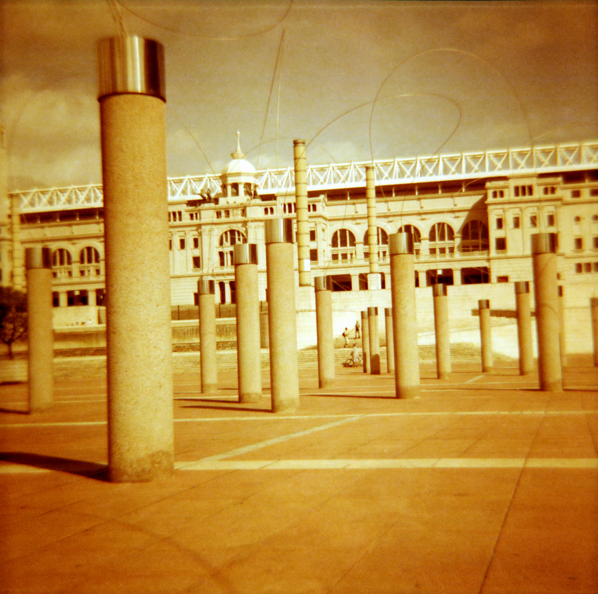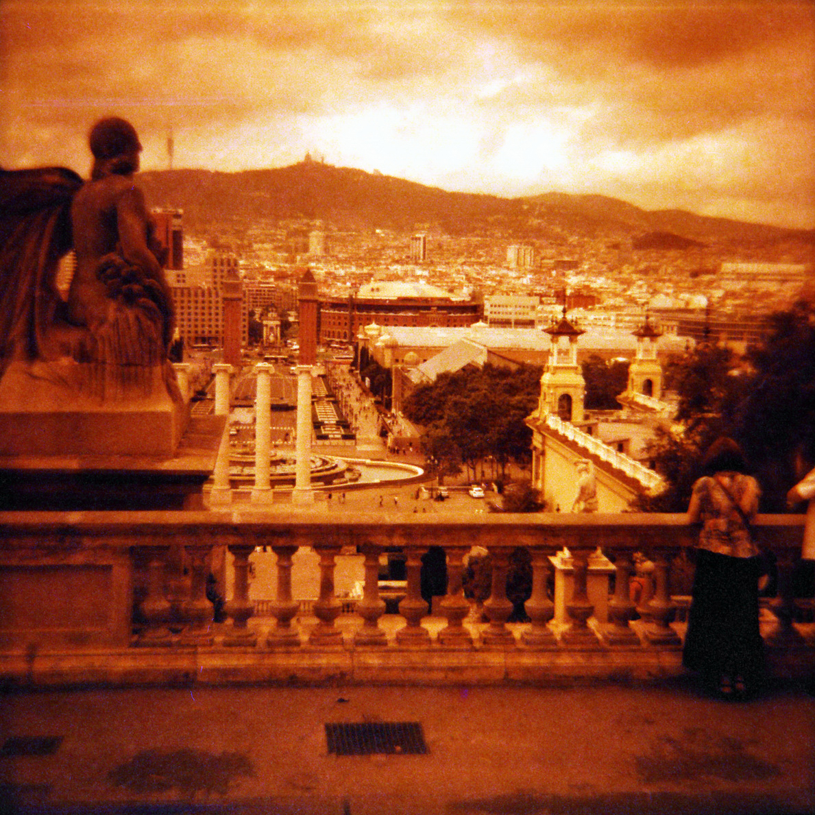 Walking up to Palau Nacional and the view of the town standing in front of it. Lovely in Redscale, isn’t it?
