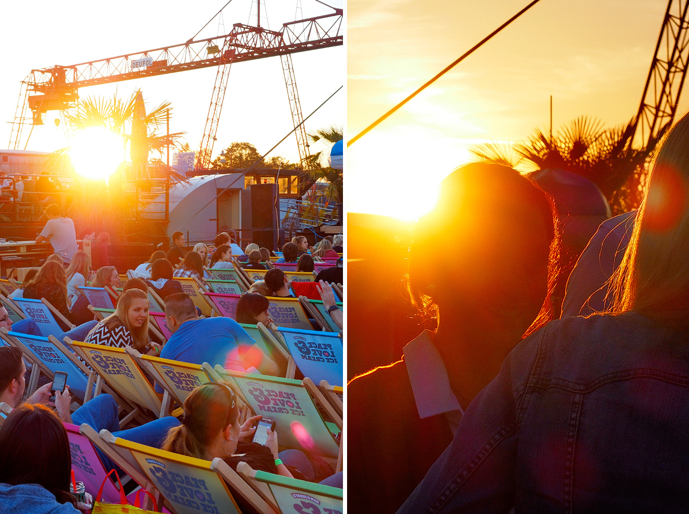Mittlerweile ist es schon nach 21.00 Uhr. Während die Sonne langsam untergeht und das „Herr Walter“ in ein romantisches Hafenwunderland verwandelt, kommt die Menge zur Ruhe. Die Schatten werden länger und die Schlange am Eiswagen kürzer. Viele haben es sich mit einem Getränk in der Hand, den Zehen im Sand und den Freunden an der Seite mit Blick auf die Leinwand gemütlich gemacht. Dortmund erstrahlt in goldenem Licht und ich kann mir gerade keinen perfekteren Ort vorstellen, um einen sommerlichen Freitagabend zu verbringen. Auch Berit und ich haben jetzt fast Feierabend und strecken zum ersten Mal seit ein paar Stunden die Füße von uns. Die besten Bilder sind im Kasten und das einzige, was diesem Abend noch fehlt, ist der perfekte Film.
