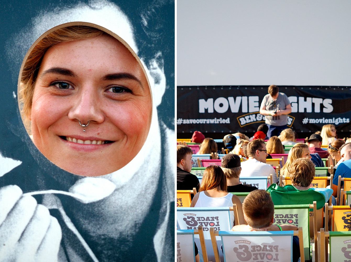 Während die einen gemütlich ihr Eis löffeln und die anderen bereits seit Stunden ihren Liegestuhl im Logenbereich direkt vor der Leinwand warm halten, besichtige ich zusammen mit Berit endlich den Infostand zum Thema „Klimaschutz“. „Save our swirled“ ist das Motto oder eben auch #eiskaltgegendenklimawandel. Denn „Ben & Jerry’s“ achtet nicht nur bei der Eis-Produktion auf nachhaltige und faire Herstellung mit Blick auf Umweltschutz, Tierschutz und soziale Standards, sondern engagiert sich auch darüber hinaus für gesellschaftliche Themen, im Großen und im Kleinen. Ziel dieser Kampagne ist es, dass die Weltgemeinschaft bis 2050 auf 100 % saubere Energie wechselt und dass die Erderwärmung unter 2 Grad Celsius gehalten wird. Denn nicht nur das Eis von „Ben & Jerry’s schmilzt bei einem solchen Anstieg, auch die Polkappen leiden und damit das Klima. Wer mag, kann direkt vor Ort eine Petition unterschreiben, die zum Weltklimagipfel Ende 2015 in Paris vorgelegt werden soll. Wer es nicht zu einem der Events schafft, kann das auch online tun.