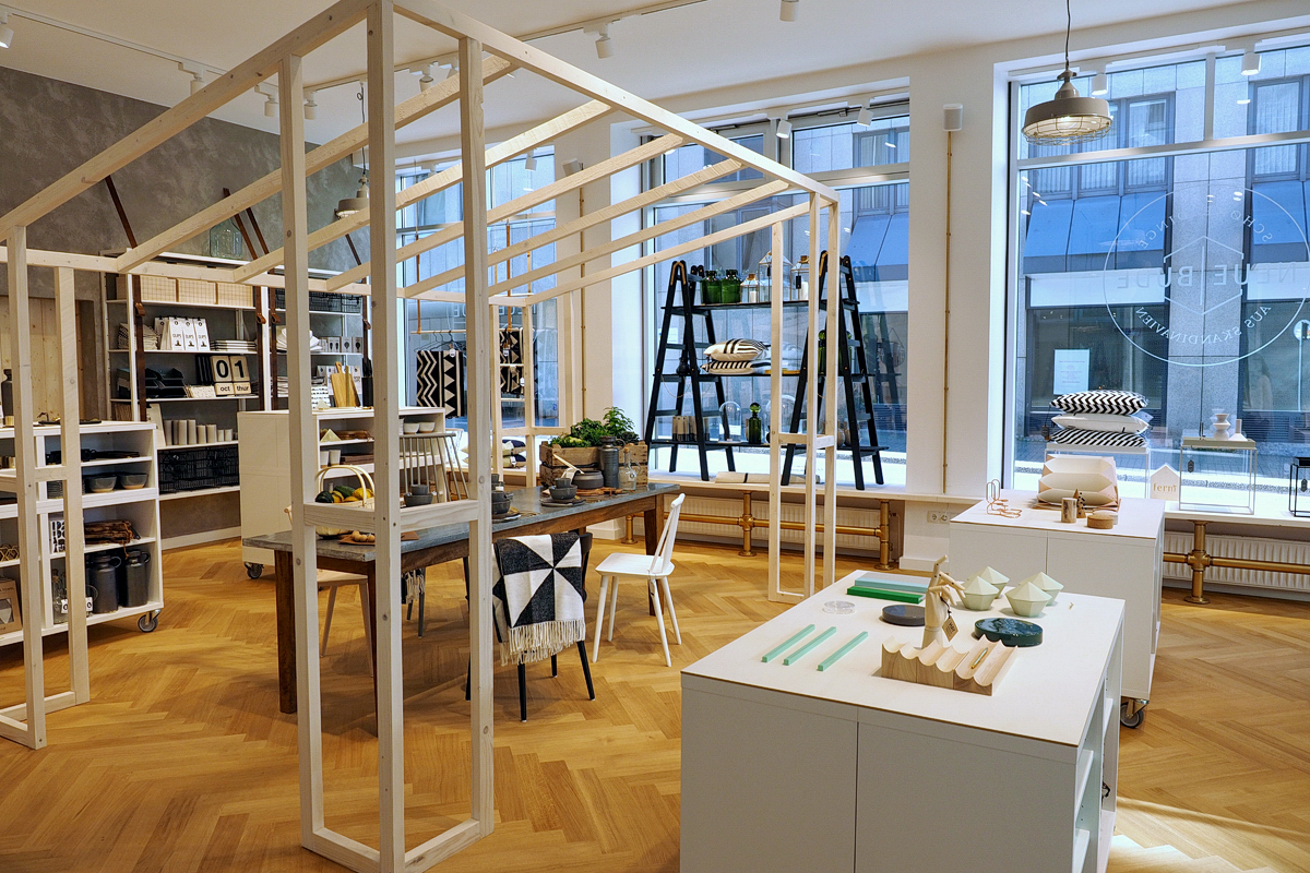 Im Moment dominieren bekannte skandinavische Marken das Sortiment: Ferm Living, House Doctor, Hay oder auch Designletters. Im Schmuck- und Uhrenbereich locken Komono und Enamel Copenhagen. Bald sollen sich aber noch viele weitere, kleinere und noch unbekanntere Labels dazugesellen. „Wir stehen ja erst am Anfang. Die Leute sollen gern wiederkommen wollen, weil sie immer etwas Neues entdecken!“, erzählt Robert. „Übrigens sind wir jetzt nicht plötzlich Anti-IKEA, oder so. Ein Teil unserer Einrichtung hier im Laden stammt ebenfalls von dort. Wir sind vielmehr der Meinung, dass sich beides gut ergänzt. Ein paar IKEA-Basics und dann ein paar schöne Details, um es individueller zu gestalten, von uns. Das ist doch perfekt, oder?“ Das finde ich auch. Und möchte am liebsten stehenden Fußes meine Wohnung entrümpeln und neu gestalten.